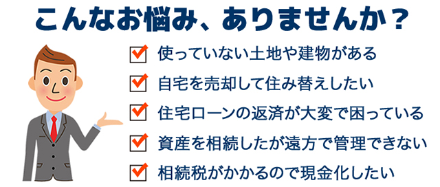 所有している不動産が遠方でお困りの方、まずはお電話・メールで、ご相談をお受けいたします。また、相続不動産の売却時の専門的なご相談も可能です。税理士、司法書士、弁護士といった各種専門家と連携してスムーズな相続をサポートします。