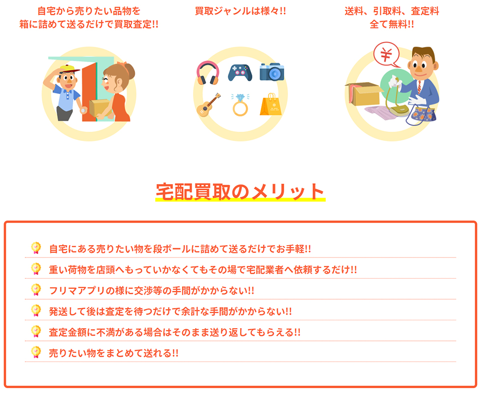 | 主な業務 | 店舗買取/出張買取/宅配買取 買取ビジネス独立支援サービス(コンサルティング) 遺品整理/生前整理 不用品回収/残地撤去 ハウスクリーニング 内装/外装リフォーム 引越し/梱包/運搬 解体作業 インターネット小売業 WEBサイト制作 生活保証(身元保証・老人ホーム入居・葬送などの支援サービス) 家賃保証や連帯保証など各種賃貸保証・滞納家賃の回収や督促など賃貸管理業務を代行サービス |
