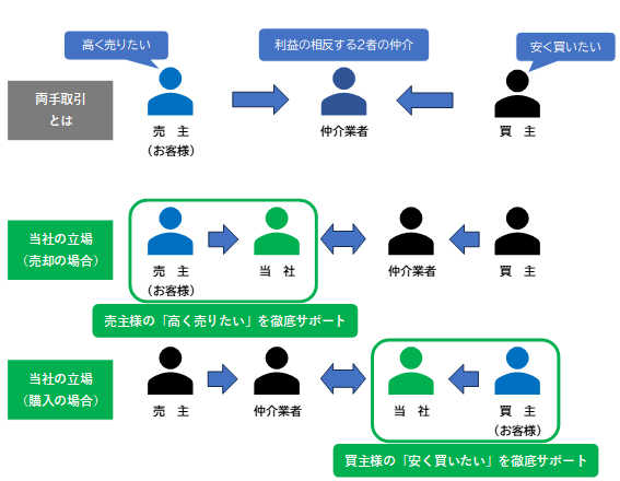 不動産業界の悪習ともいえる「両手取引」を行いません