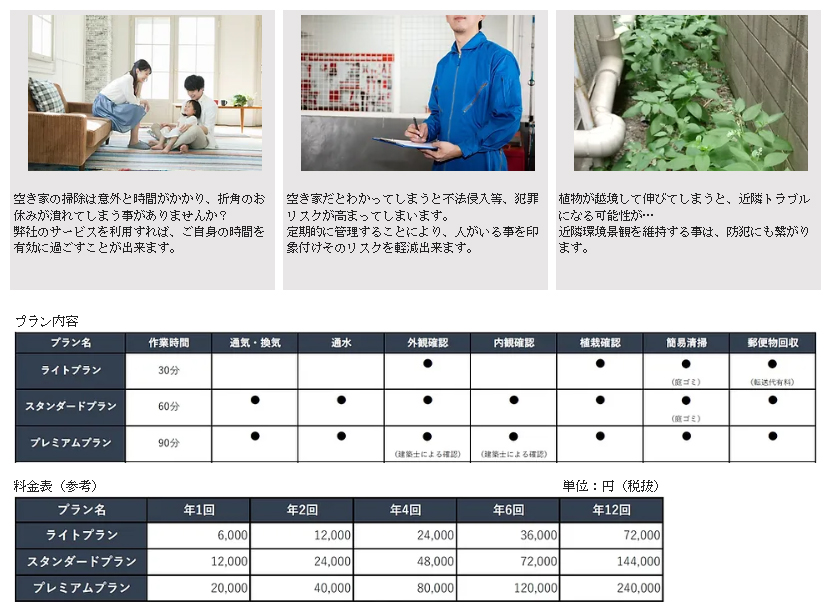 現在海外に住んでいる為、家の管理を親に任せていたのですが、親も足腰が悪くなって来たので、こちらのサービスをお願いしました。