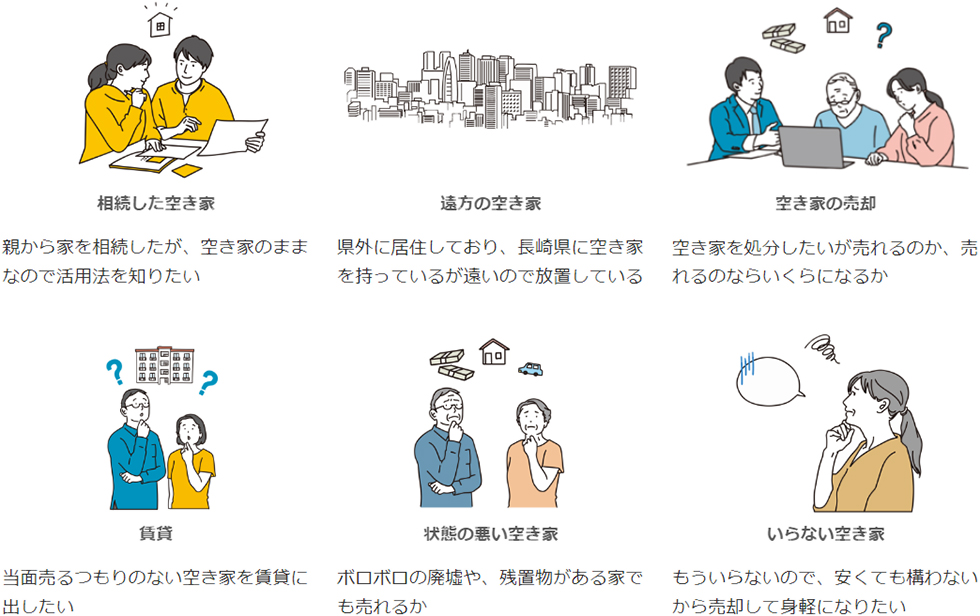 | 相談内容 | 空き家の管理, 空き家を売りたい, 空き家査定, 一室補強, 空き家のリフォーム・リノベーション, 更地にしてコインパーキング経営, 空きマンション・空き部屋の不動産投資, 空き家を貸したい |