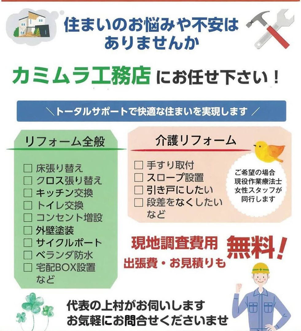 | 主な業務 | 戸建住宅・外壁・屋根調査・リフォーム |