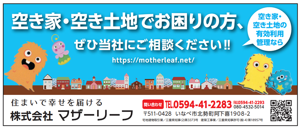 いなべ市で10年以上不動産事業をおこなっています。地域に根づいた不動産会社だからこそ、地域の特性やニーズを深く理解していますので、地域の皆様の豊かな暮らしに貢献いたします。