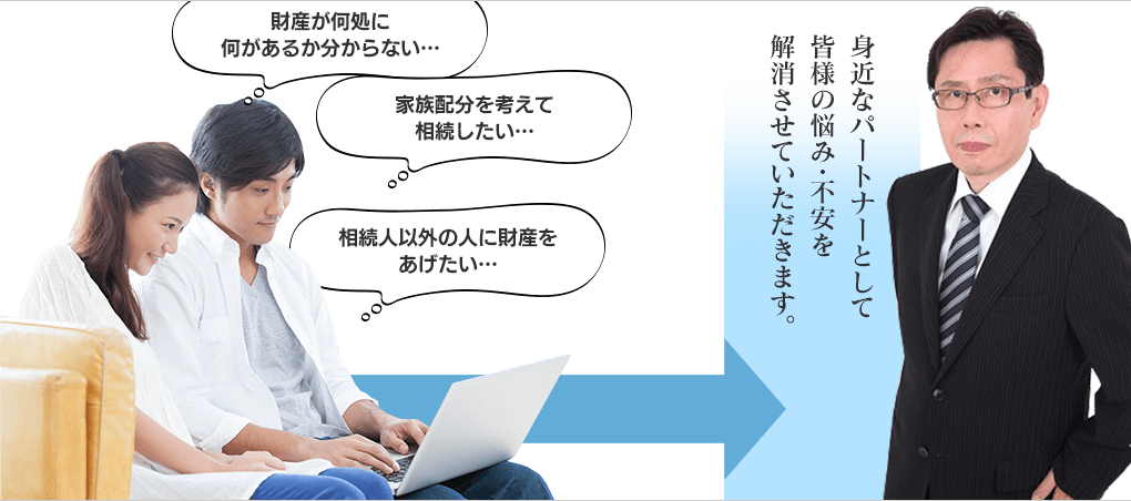 また、司法書士、弁護士といった各分野の専門家と連携してスムーズな相続をサポートします。プライバシー厳守で対応させて頂きますので、お気軽にご相談下さい。