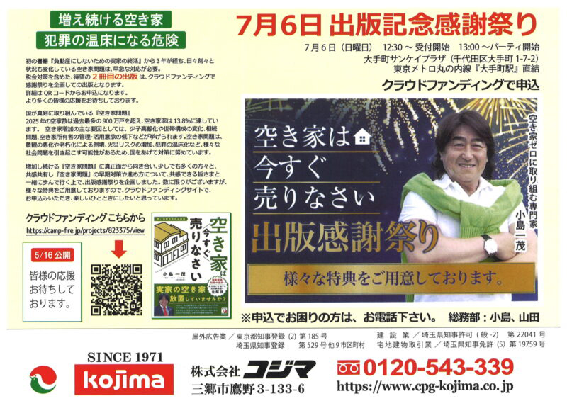 代表の小島一茂が『負動産にしないための実家の終活』に続く、
