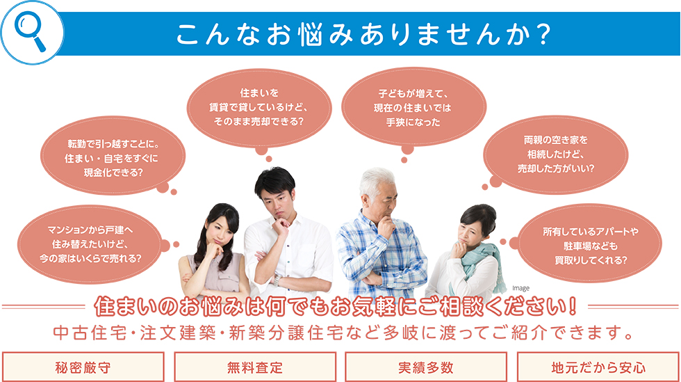 | 相談内容 | 空き家の管理, 空き家を売りたい, 空き家のリフォーム・リノベーション, 空き家の解体, 空き家を貸したい, リースバックのご相談 |