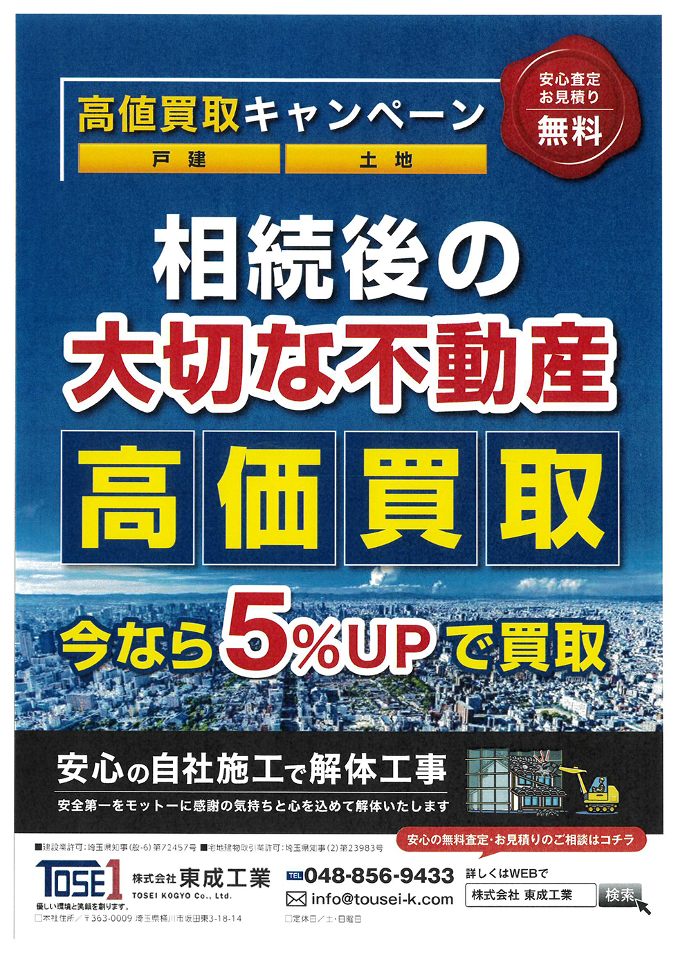 予算内で素敵な不動産として東成工業が再生します。