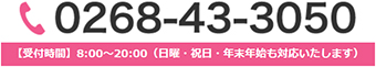 | 営業時間 | 8:00~20:00 日曜、祝日、年末年始も対応 |