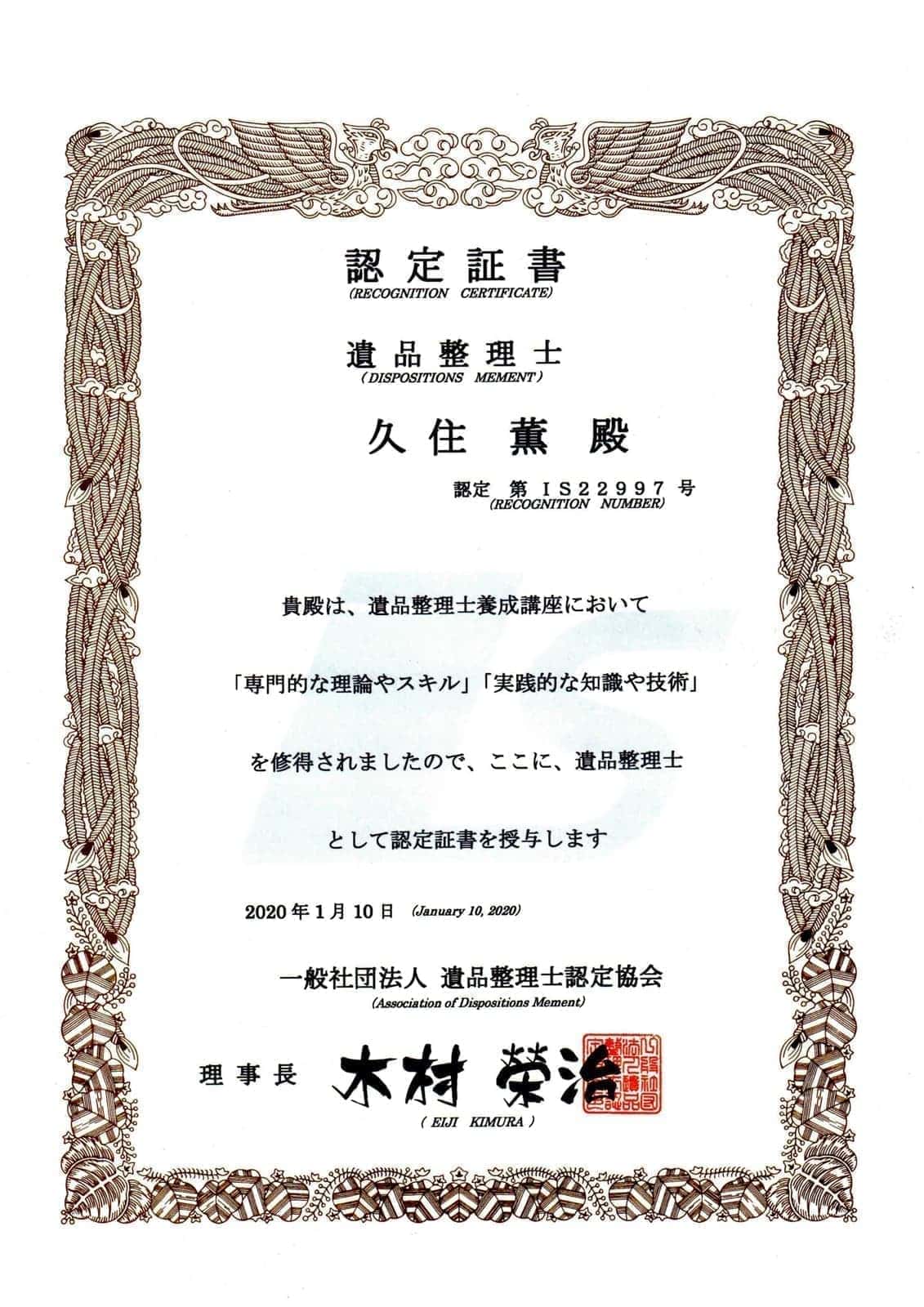 当社は「遺品整理士」認定を持つスタッフが所属しております。