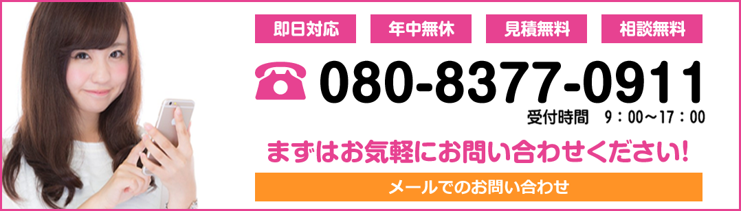 | 電話 | 080-8377-0911(時間外でも対応可能です) |