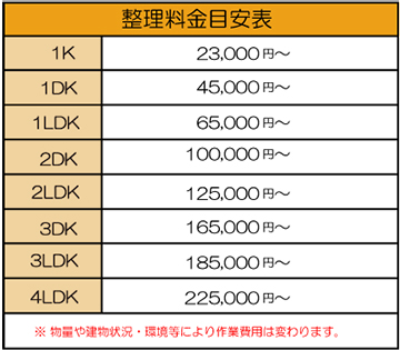 ※不用品を処分する際はは別途費用が必要となりますので、あらかじめご了承ください。