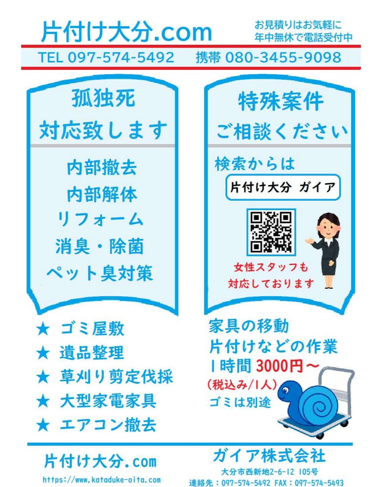 大分県内で片づけ清掃・遺品整理・特殊清掃ならガイア